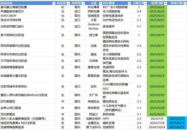 9.22-9.28,NMPA发布3个新药批准,CDE受理16个新药上市申请