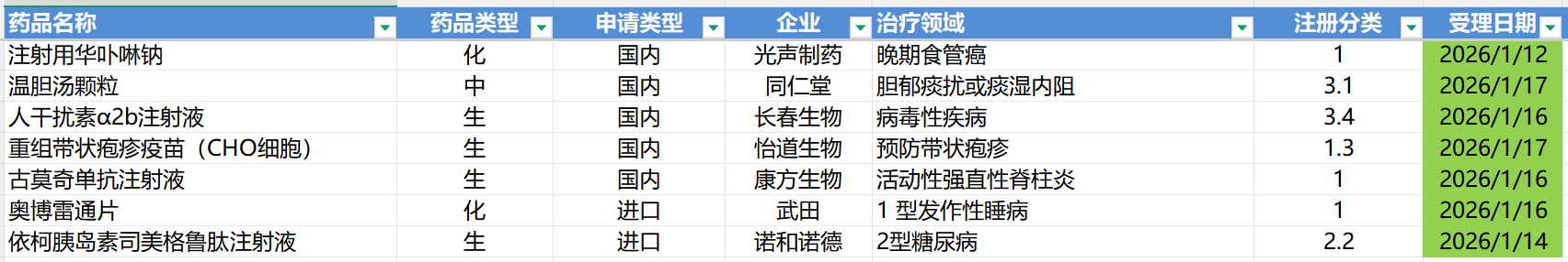 1.12-1.18,NMPA未发布新药批准,CDE受理7个新药上市申请