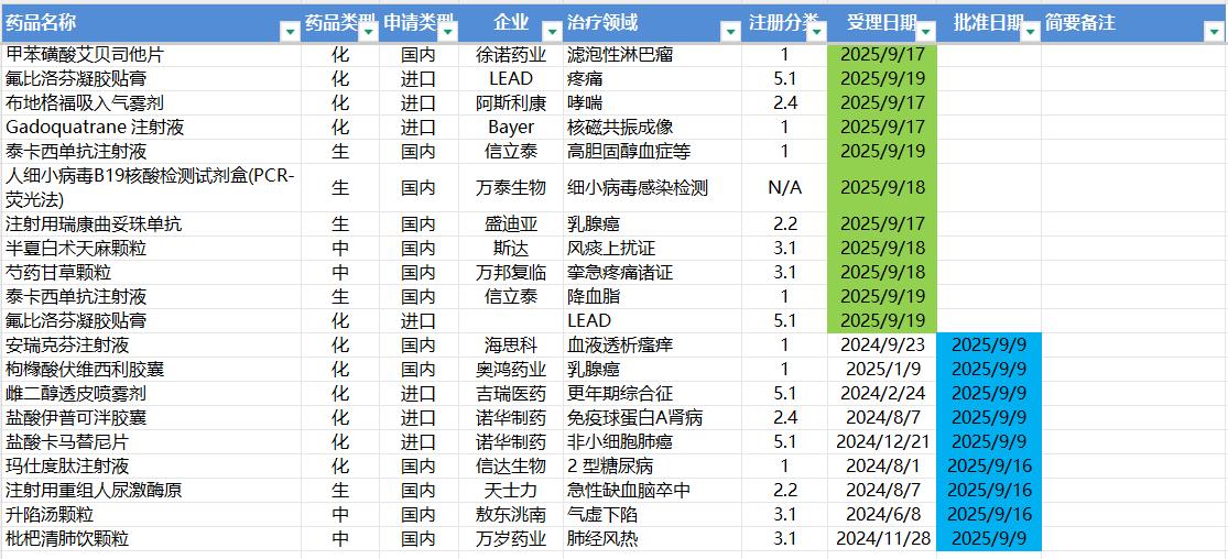 9.15-9.21,NMPA发布9个新药批准,CDE受理11个新药上市申请