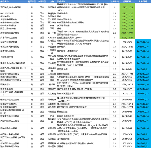 12.22-12.28,NMPA发布23个新药批准,CDE受理9个新药上市申请