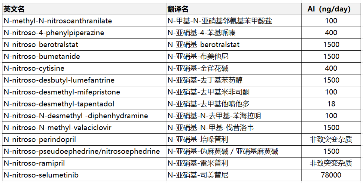 12.1,【EMA】附录1:N-亚硝胺的可接受摄入量(更新)