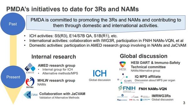 PMDA在其参加上述FDA-NIH研讨会上发表的PPT“PMDA's initiatives and thoughts for 3Rs and NAMs”中阐述了当前进展和未来考虑,并针对FDA于4月10日宣布计划逐步取消对单克隆抗体和其他药物的动物试验要求提出自己的观点。