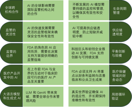 AI在监管科学中的成功整合取决于克服与数据质量、模型验证、人-AI交互和问责制相关的关键挑战,以确保可靠性、透明度和信任度。就数据质量和可获得性而言,毒理学等领域仍面临数据匮乏的困境。在AI模型验证方面,传统的验证方法可能无法全面评估AI在监管应用中的表现,需要新的方法(这方面欧盟成为先行者,读者可参考EMA近期发布的AI临床工具验证报告)。在人-AI交互方面,采用AI增强人类专业知识的“副驾驶”方法,可以建立信任并进行有意义的监督,从而平衡问责制和AI的优势。为了实现问责制和责任制,需要建立清晰的框架来界定AI辅助决策的责任,并制定错误处理指南。