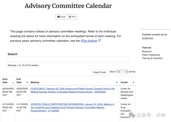 目前在 FDA 专家委员会日历页面上,已经没有任何计划的会议安排。VRBPAC 页面上,其“会议材料”档案显示没有今年的内容。