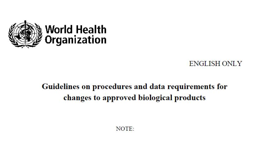 【适用范围】 本文适用于已获上市许可的生物制品,包括疫苗、生物治疗产品(如重组蛋白、单抗)、血浆制品及诊断用蛋白产品。适用注册类型涵盖创新药、生物类似药及已获批产品的后续变更。发布机构为WHO,目标用户包括各国药品监管机构(NRAs)及生物制品生产企业(跨国药企、Biotech、CDMO等)。GMP相关变更不在此指南范围内。